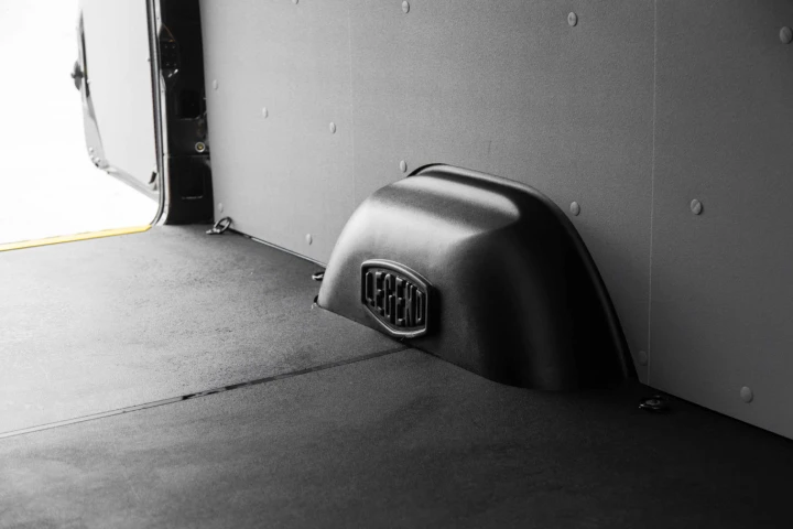 Thermal Barrier: With a layer of foiled insulation, wheel well covers complete the insulation of the van’s interiors.