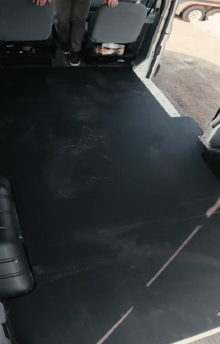StabiliGrip is a heavy-duty rigid van floor, built to withstand heavy wear and tear. It’s very reliable for working on (anti-slip surface, flat), yet has a fine grip so you can still slide skids, carts, and other cargo on. It only loses about 20% of its grip when it gets wet, whereas other floors can lose up to 80%. This floor will stay with your van until you’re done with it.